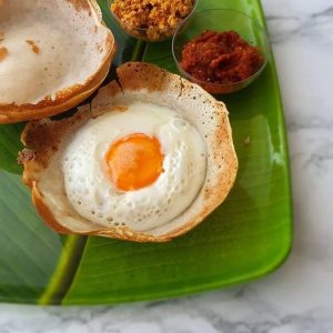 Dish 2: Egg Hoppers with Pol Sambol: Picture a bowl-shaped pancake, crispy on the edges and soft and