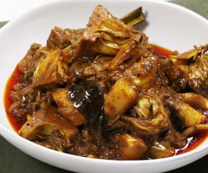 Dish 5: Polos (Young Jackfruit Curry): I’ve had jackfruit as a fruit, but never like this. Young, green jackfruit is used in a curry that is mind-blowingly delicious. The texture is dense and meaty, and it soaks up the creamy, spiced coconut milk sauce beautifully. Flavored with cinnamon, cardamom, and cloves, this curry was so hearty and flavorful, it’s hard to believe it’s completely vegetarian.